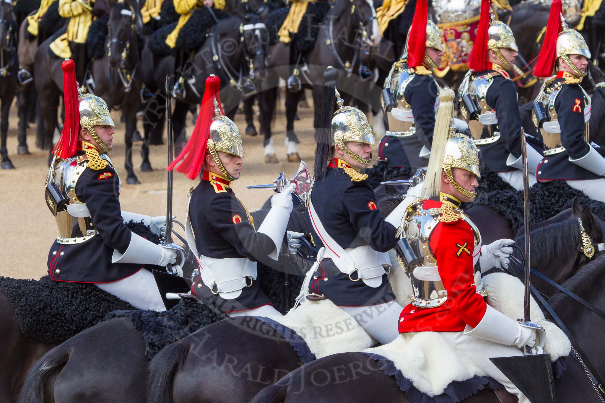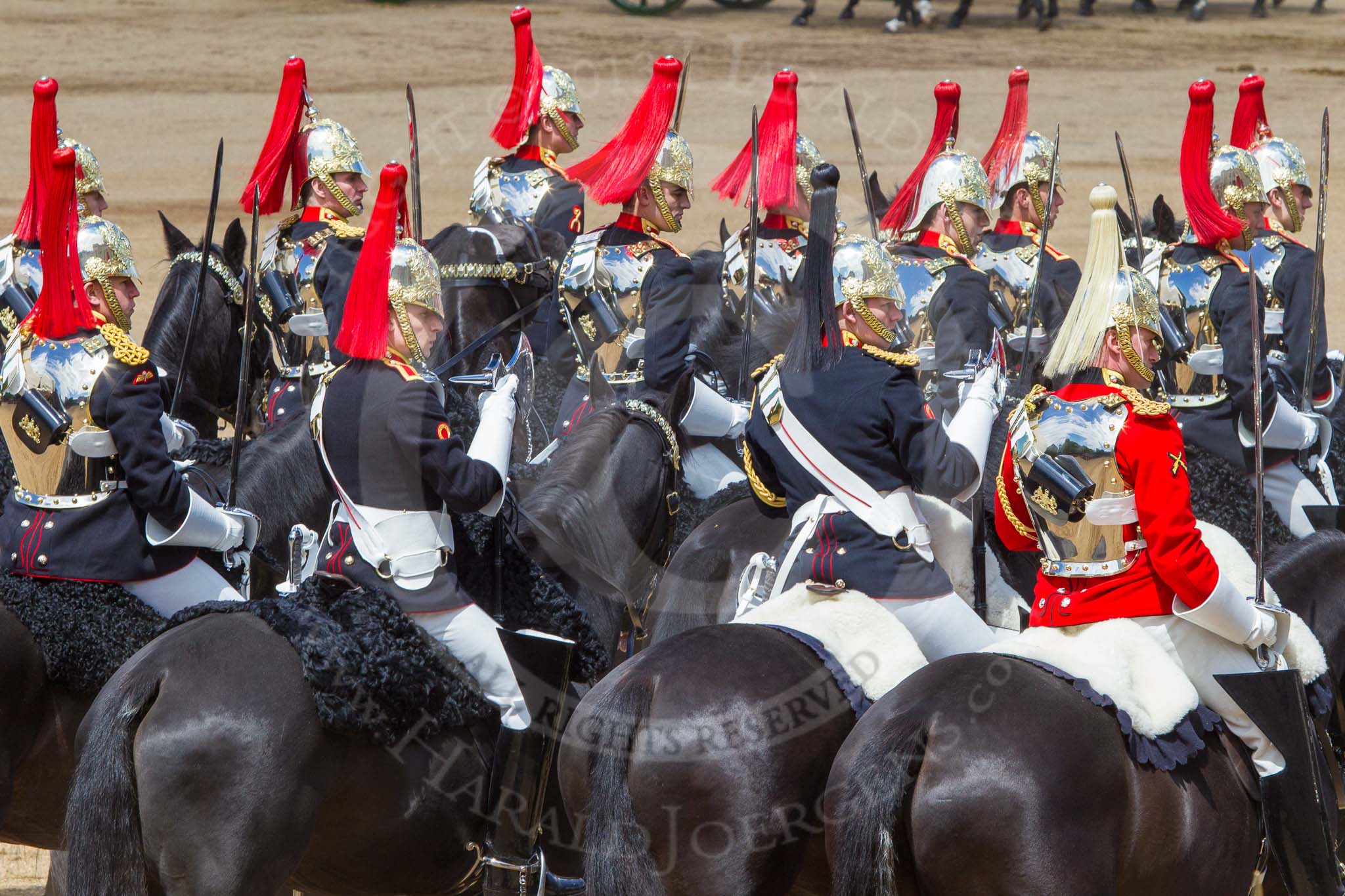 The Colonel's Review 2013: The Third and Forth Divisions of the Sovereign's Escort, The Blues and Royals, during the Ride Past.. Horse Guards Parade, Westminster, London SW1, United Kingdom, on 08 June 2013 at 11:58, image #784