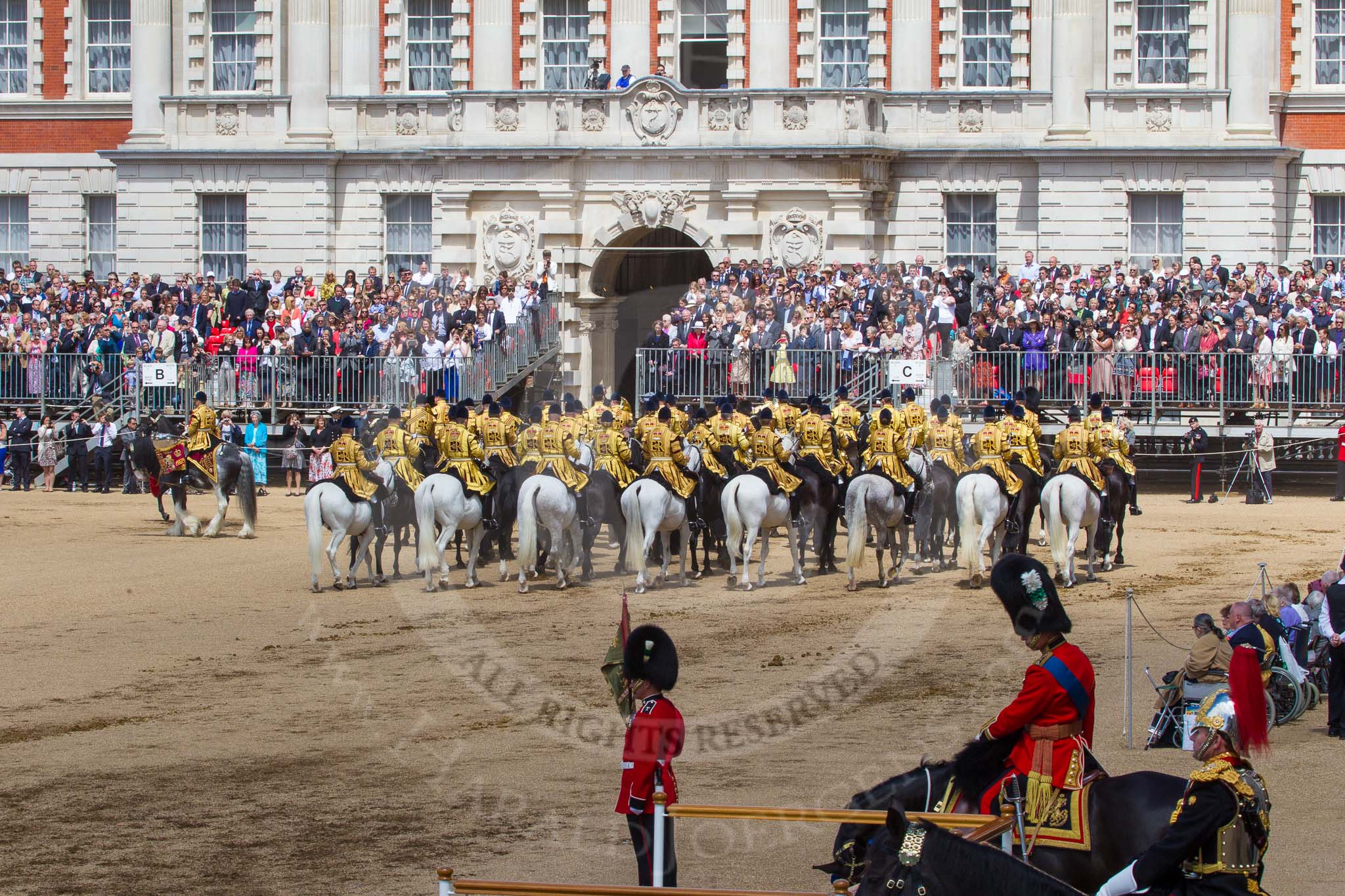 The Colonel's Review 2013: The Household Cavalry is back to their initial position on the norther side of Horse Guards Parade.. Horse Guards Parade, Westminster, London SW1, United Kingdom, on 08 June 2013 at 12:00, image #795