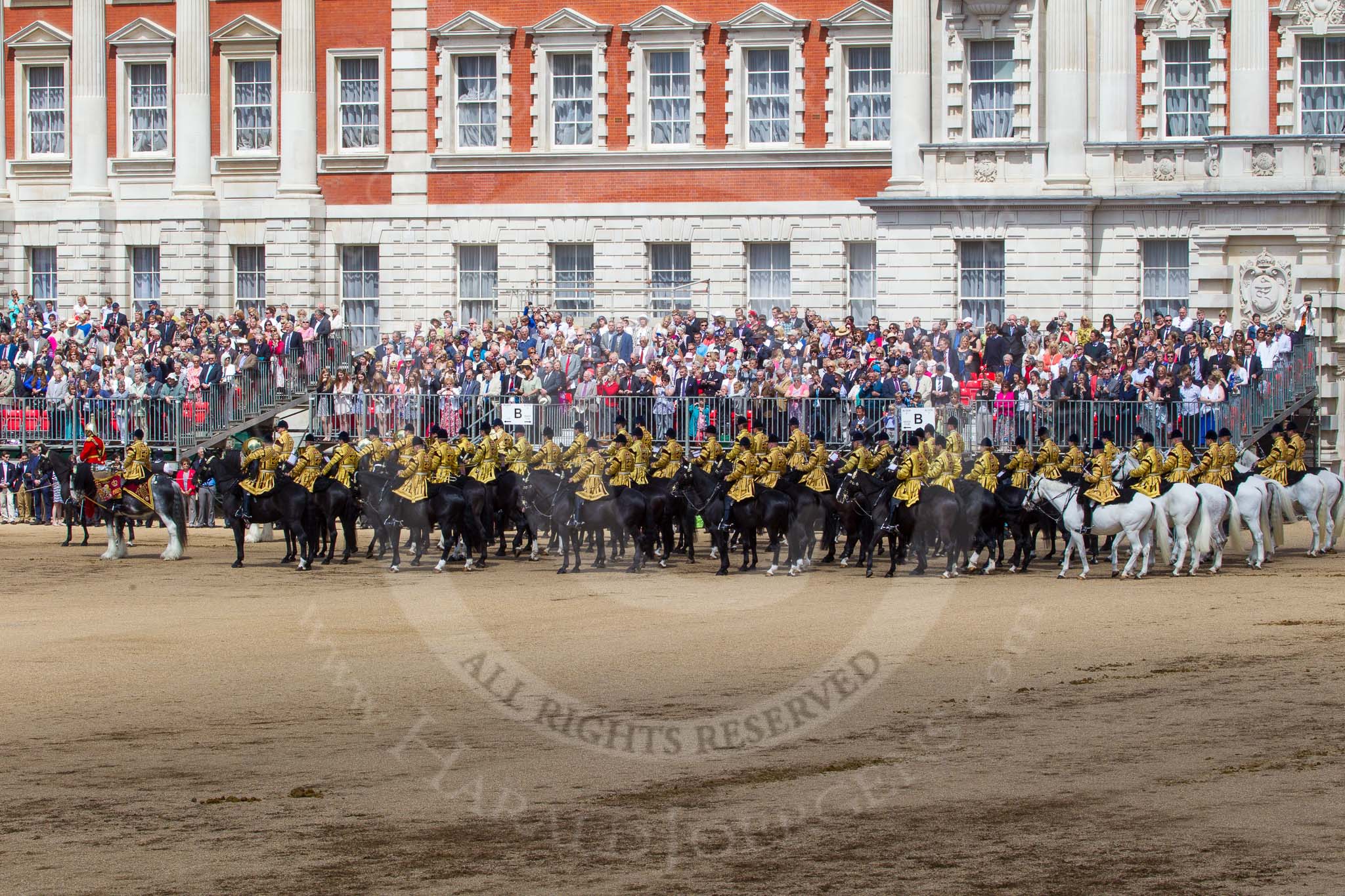 The Colonel's Review 2013: The Household Cavalry is getting back to their initial position on the norther side of Horse Guards Parade.. Horse Guards Parade, Westminster, London SW1, United Kingdom, on 08 June 2013 at 11:59, image #788