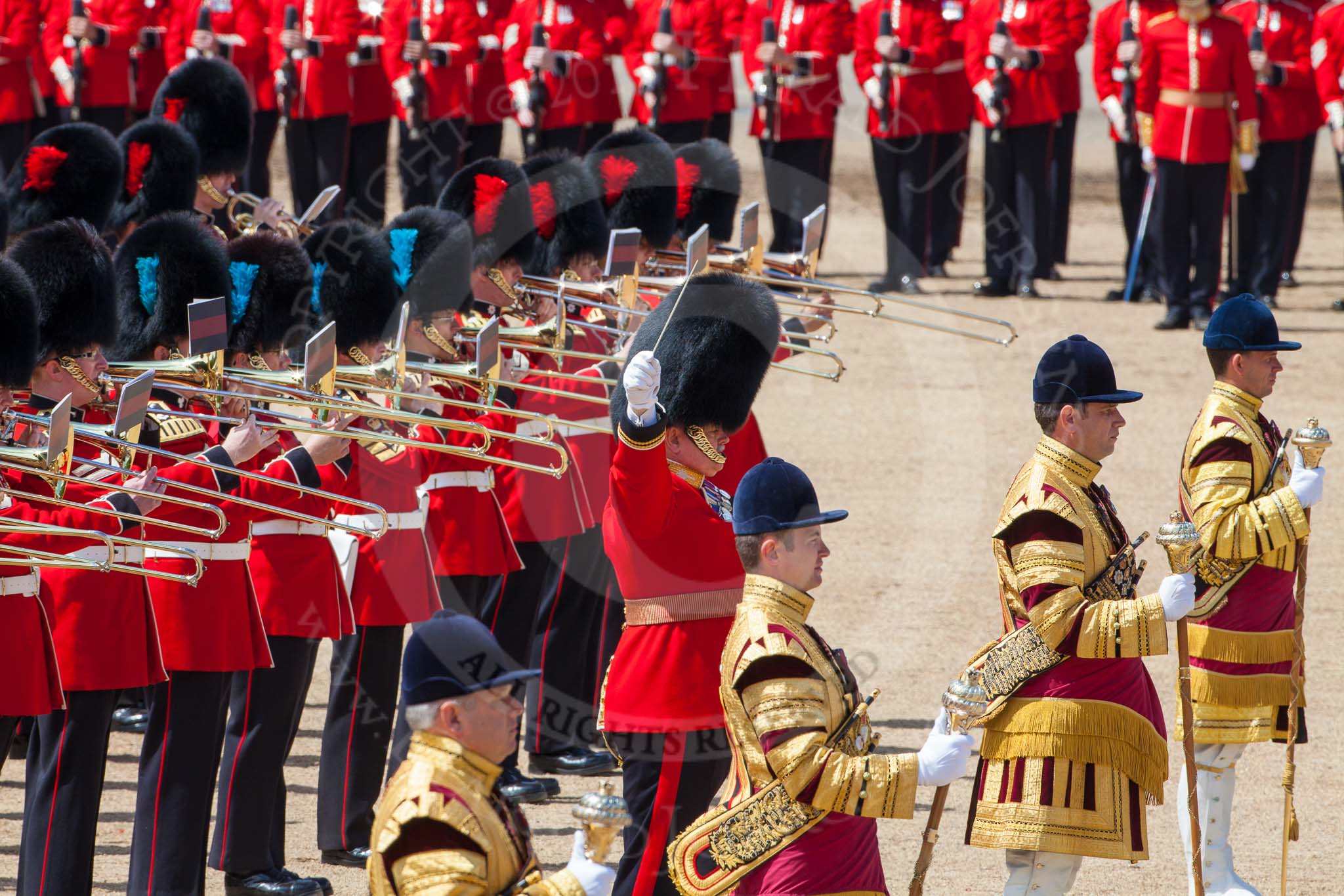 The Colonel's Review 2013: The Senior Director of Music, Lieutenant Colonel S C Barnwell, Welsh Guards, conducting.. Horse Guards Parade, Westminster, London SW1, United Kingdom, on 08 June 2013 at 12:01, image #800