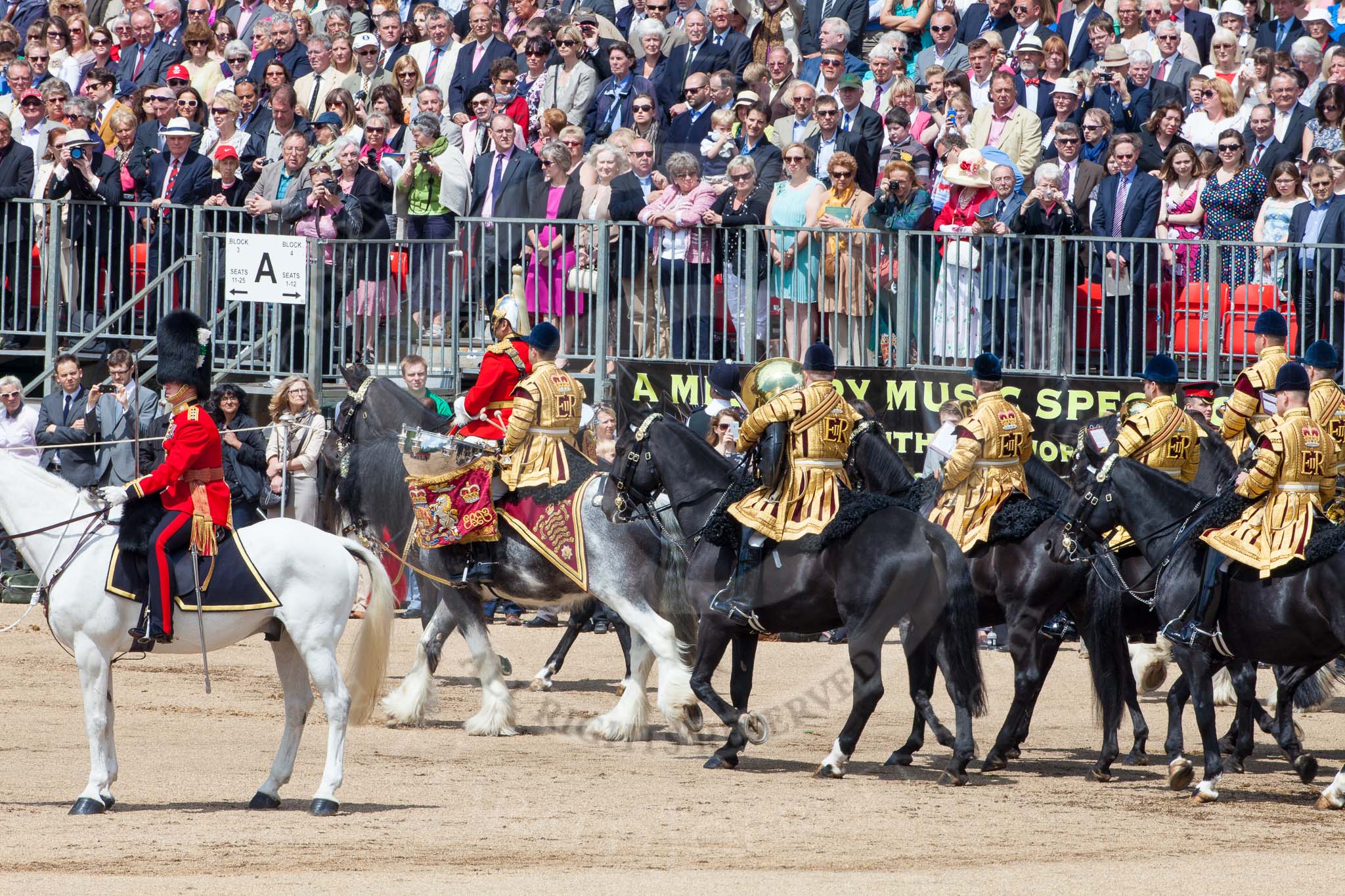 The Colonel's Review 2013: The Mounted Bands of the Household Cavalry are ready to leave, they follow the Royal Horse Artillery to march off via The Mall.. Horse Guards Parade, Westminster, London SW1, United Kingdom, on 08 June 2013 at 12:02, image #805