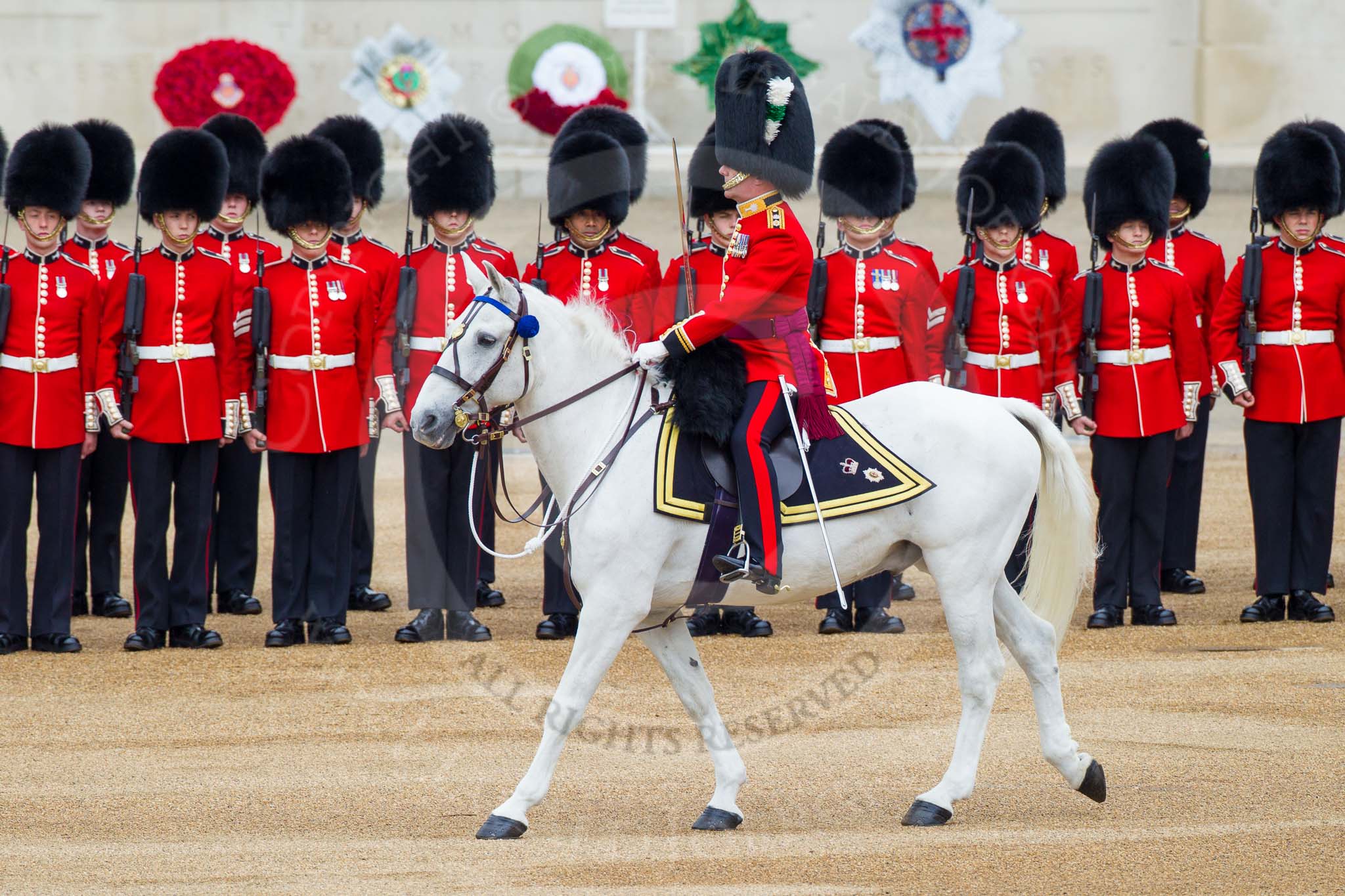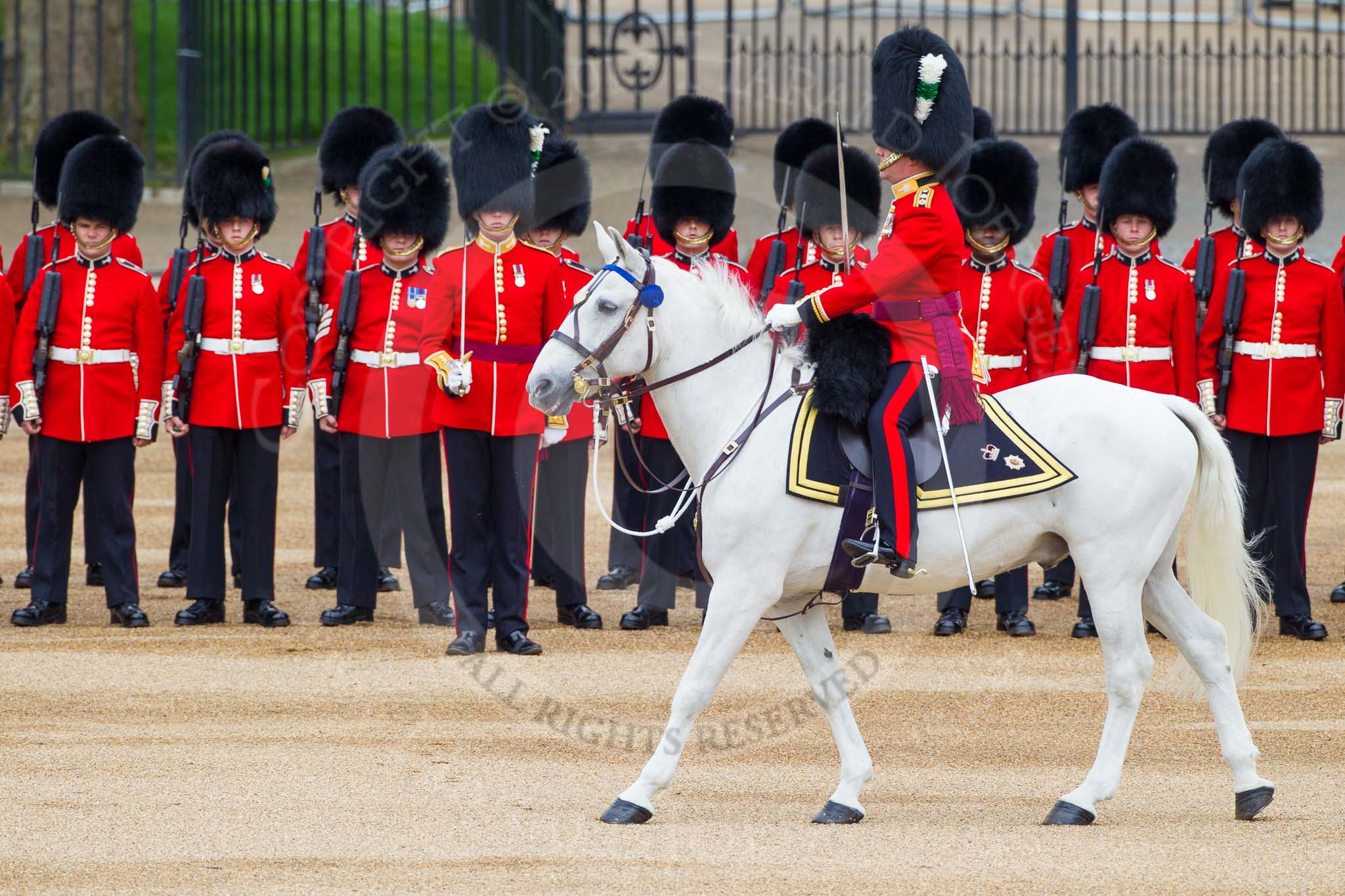 Major General's Review 2013: No. 3 Guard, 1st Battalion Welsh Guards, is opening a gap in the line for members of the Royal Family to arrive..