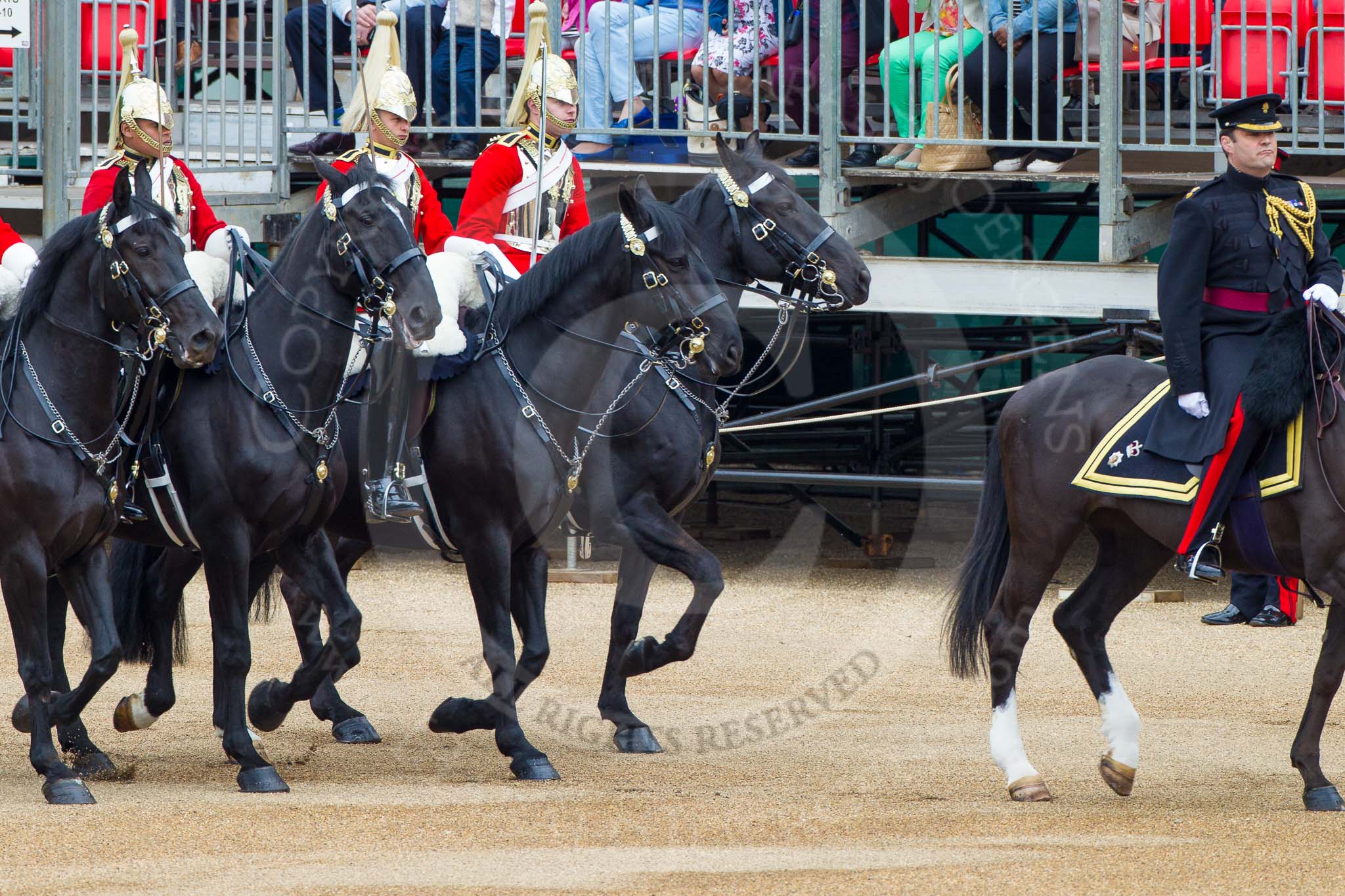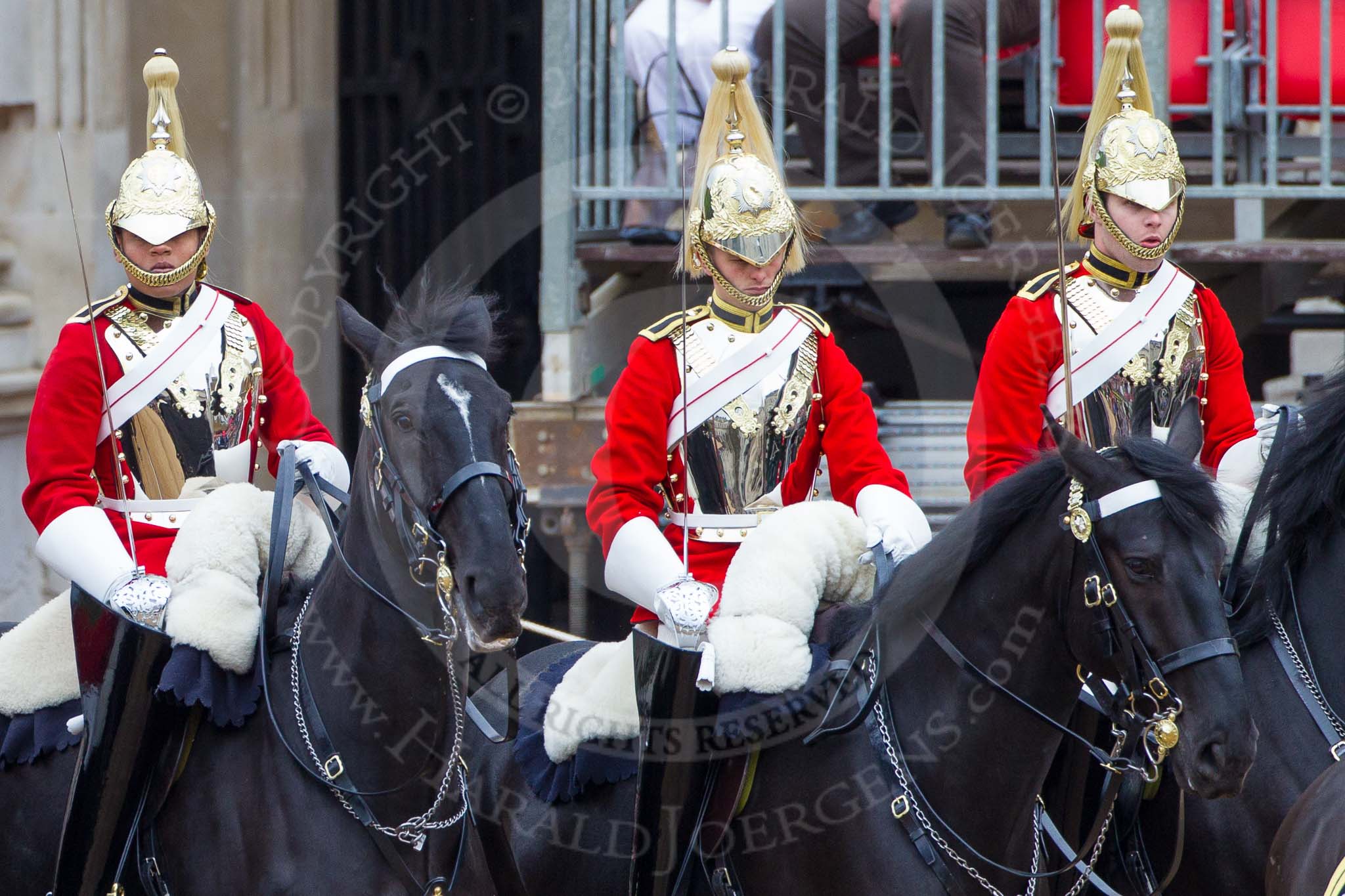 Major General's Review 2013: The Four Troopers of The Life Guards, following the Brigade Major at the head of the Royal Procession.. Horse Guards Parade, Westminster, London SW1, United Kingdom, on 01 June 2013 at 10:56, image #224