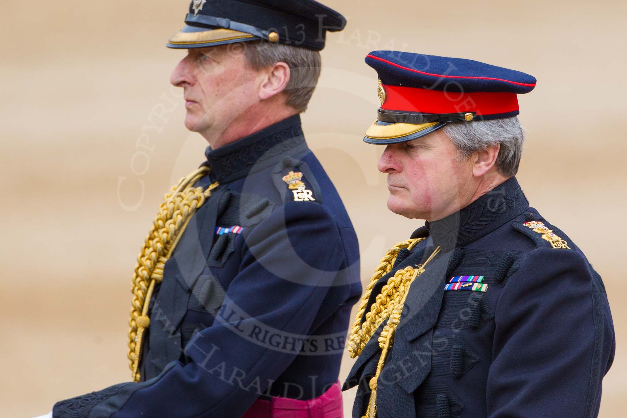 Major General's Review 2013: A Captian standing in for Lieutenant General Sir James Bucknall. A Major standing in for Field Marshal the Lord Guthrie of Craigiebank.. Horse Guards Parade, Westminster, London SW1, United Kingdom, on 01 June 2013 at 11:01, image #273