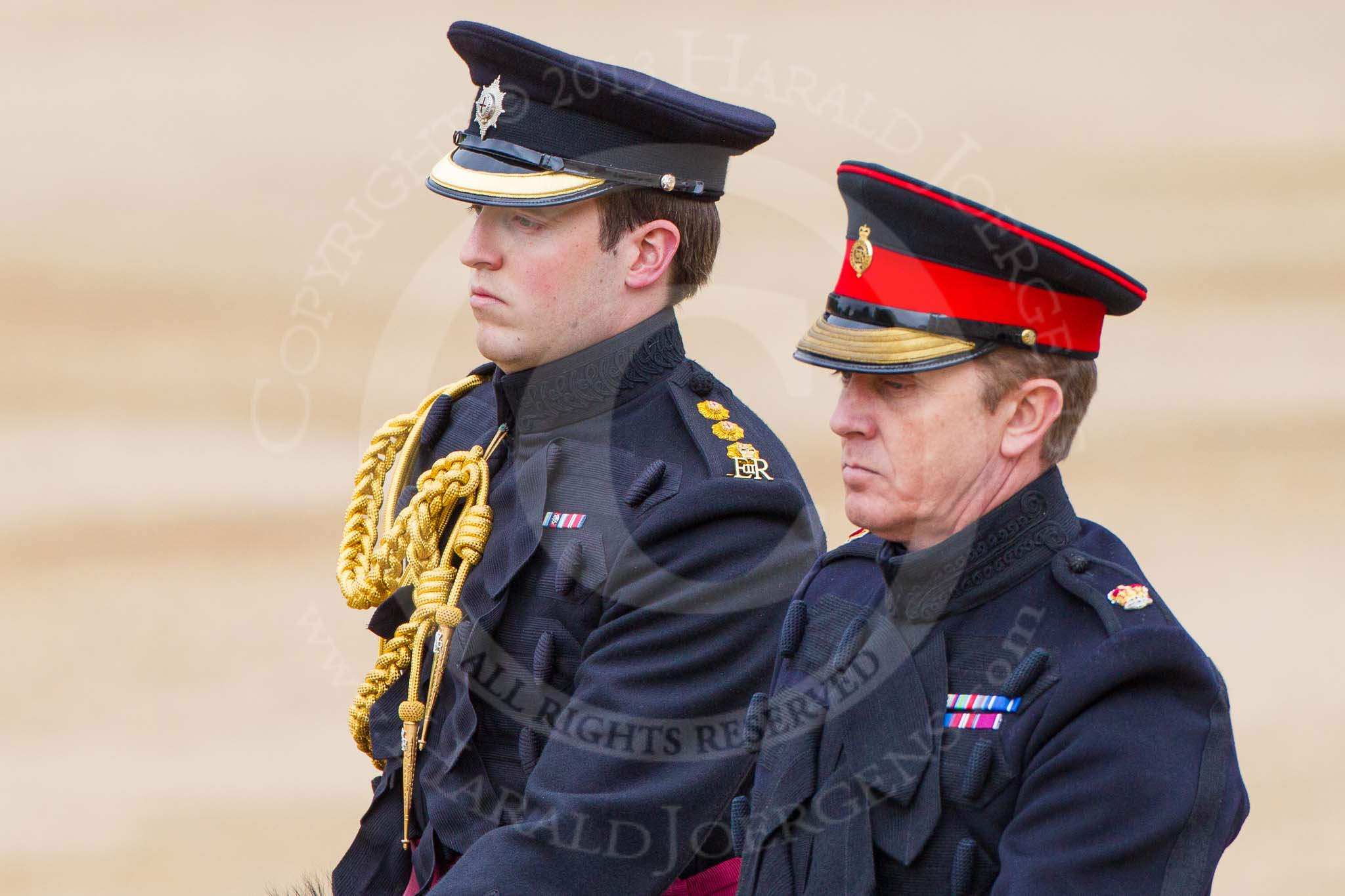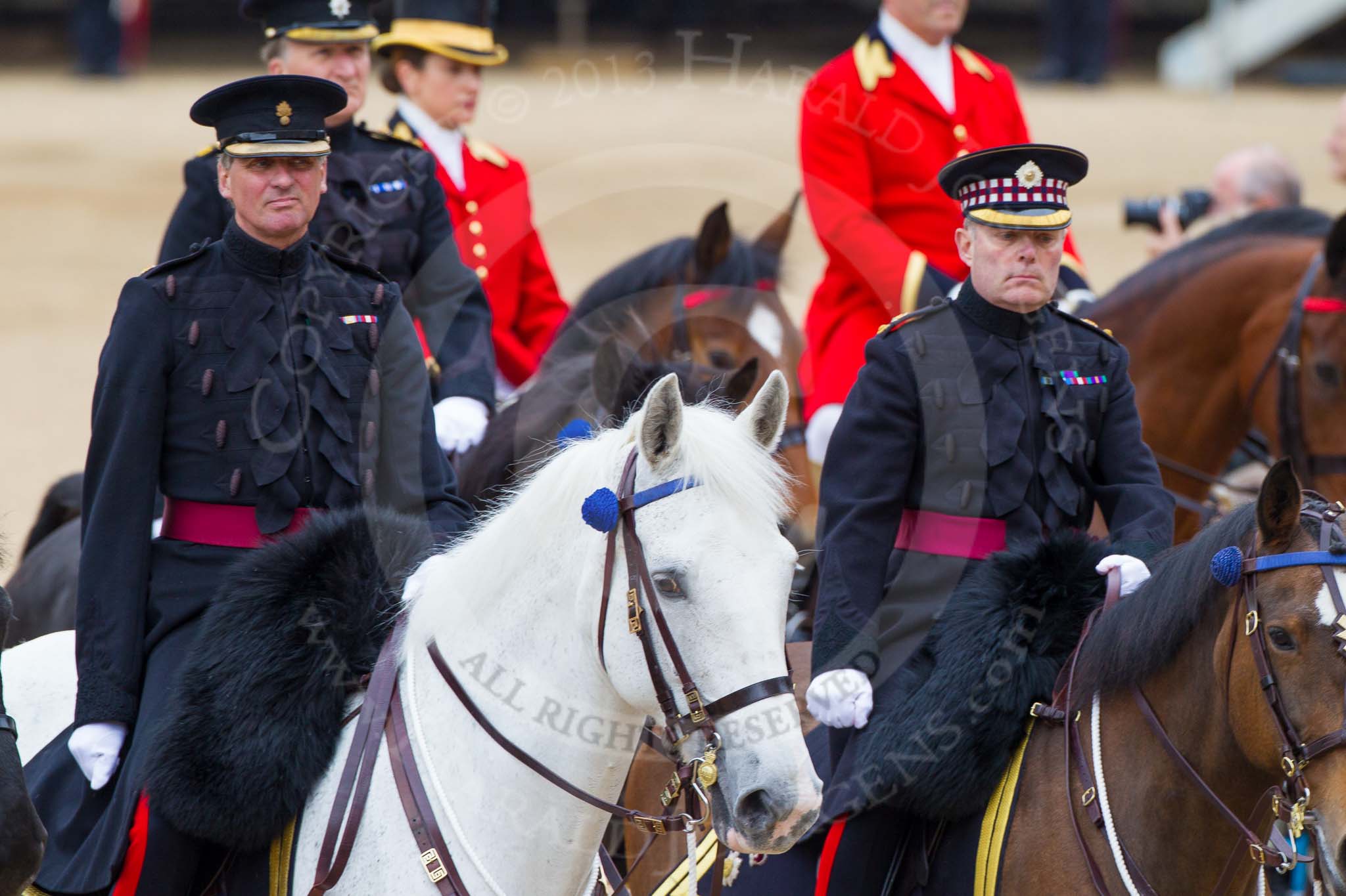 Major General's Review 2013: The Equerry in Waiting to Her Majesty, Lieutenant Colonel Alexander Matheson of Matheson, younger,The Crown Equerry Colonel Toby Browne, during the Inspection of the Line.. Horse Guards Parade, Westminster, London SW1, United Kingdom, on 01 June 2013 at 11:01, image #272