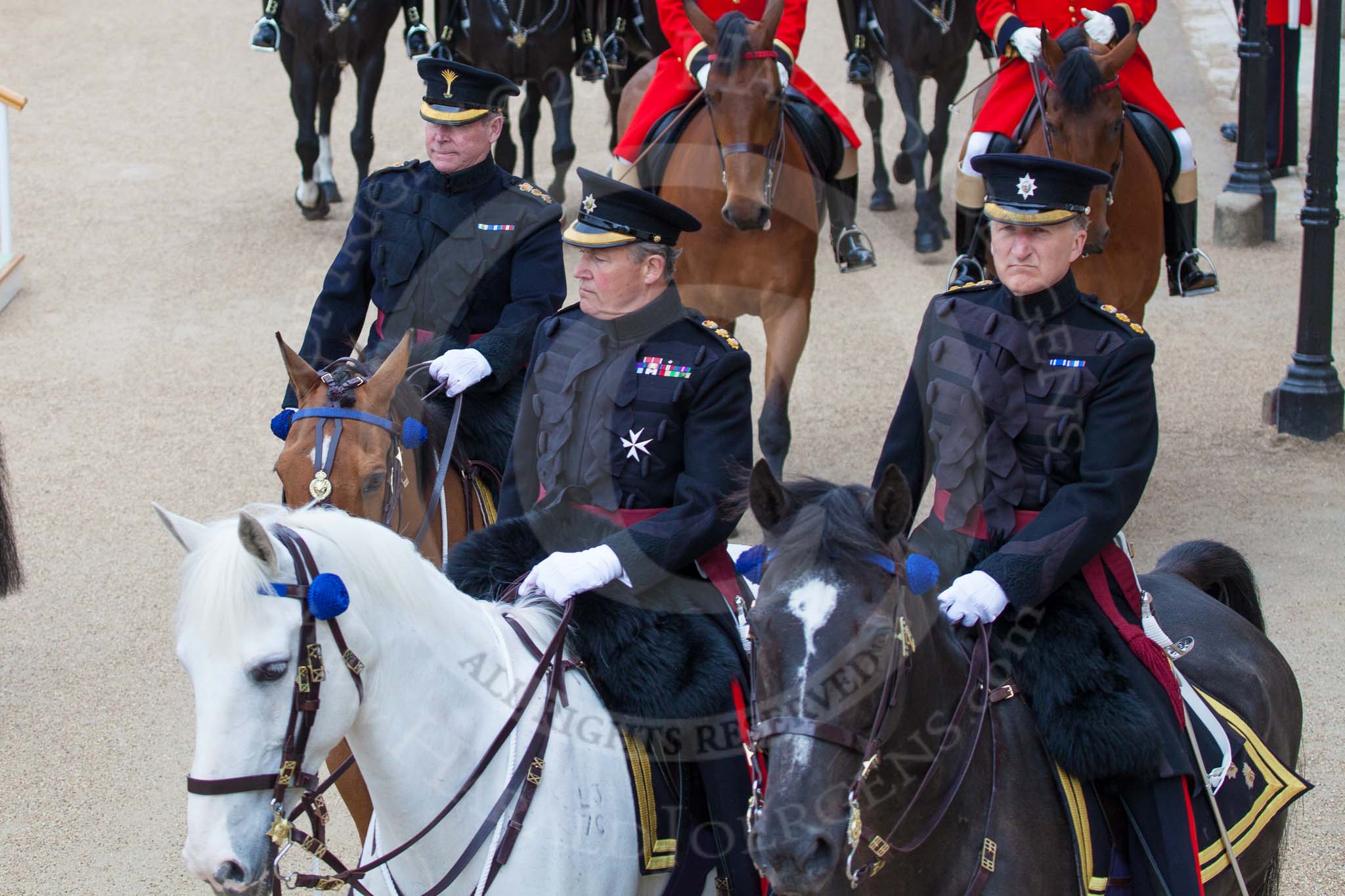 Major General's Review 2013: The Foot Guards Regimental Adjutants - Colonel T C S Bonas,Welsh Guards, Colonel T C R B Purdon, Irish Guards, and Colonel D D S A Vandeleur, Coldstream Guards.. Horse Guards Parade, Westminster, London SW1, United Kingdom, on 01 June 2013 at 11:02, image #283