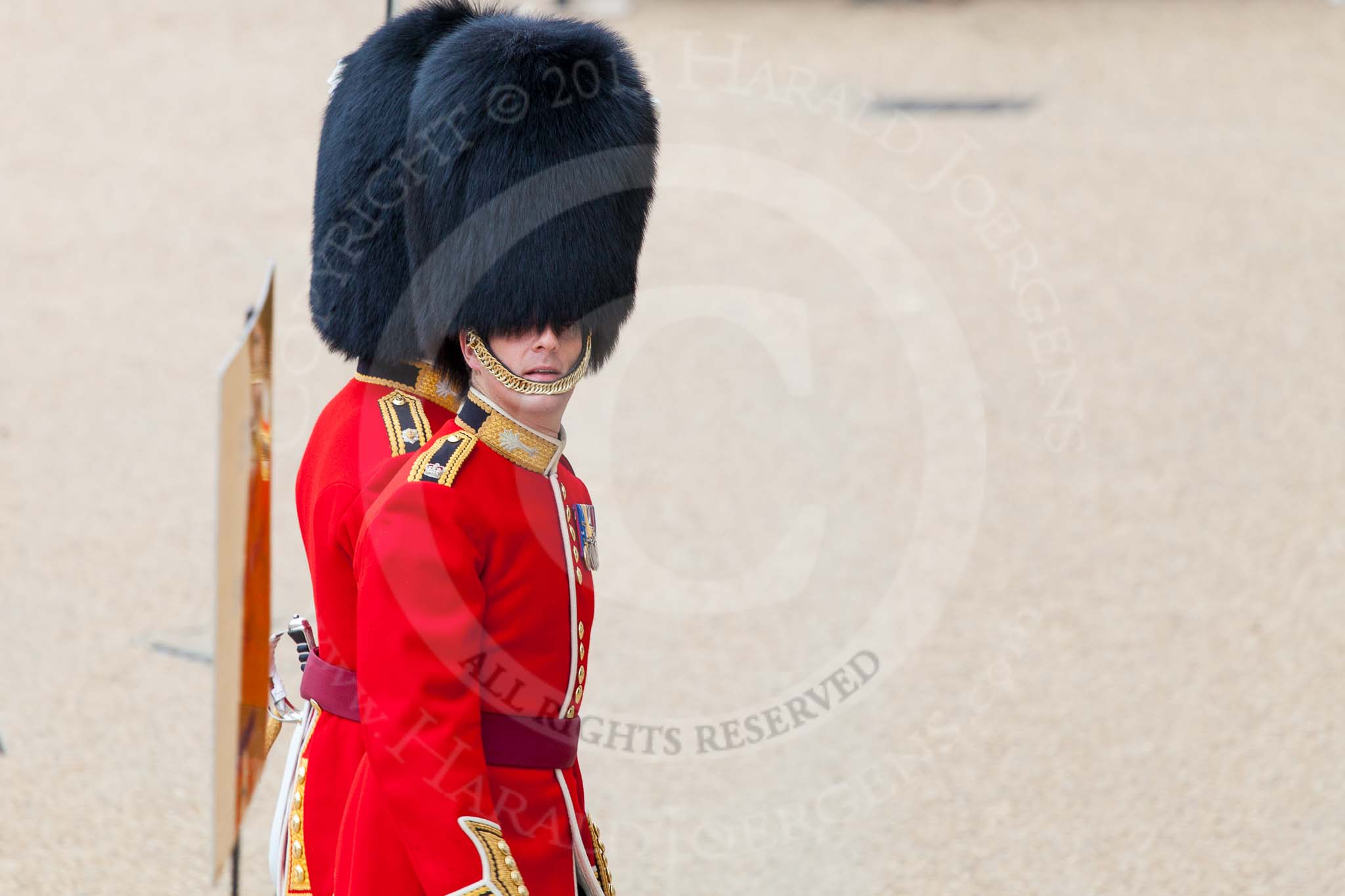 Major General's Review 2013: Major T P Y Radcliffe and Second Lieutenant J C Olley, No. 6 Guard, No. 7 Company Coldstream Guards, following the Keepers of the Ground to Horse Guards Arch.. Horse Guards Parade, Westminster, London SW1, United Kingdom, on 01 June 2013 at 09:59, image #23