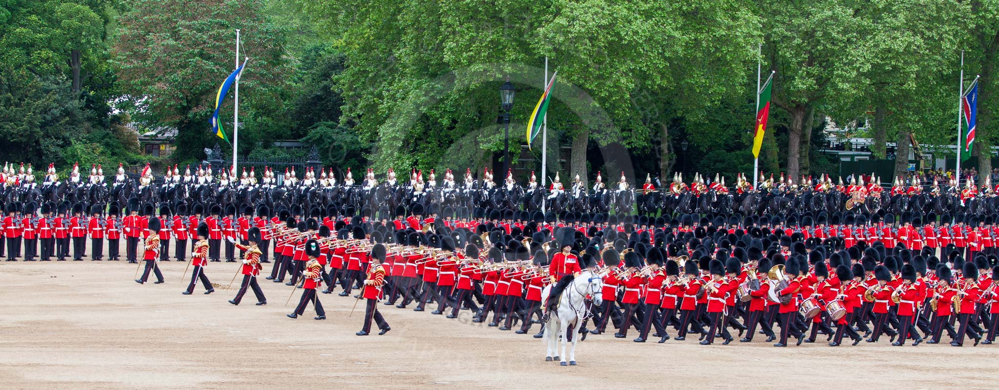 Major General's Review 2013: The Field Officer and the five Drum Majors after the Escort for the Colour has become the Escort to the Colour and the Massed Bands are performing the legendary spin wheel.. Horse Guards Parade, Westminster, London SW1, United Kingdom, on 01 June 2013 at 11:22, image #414