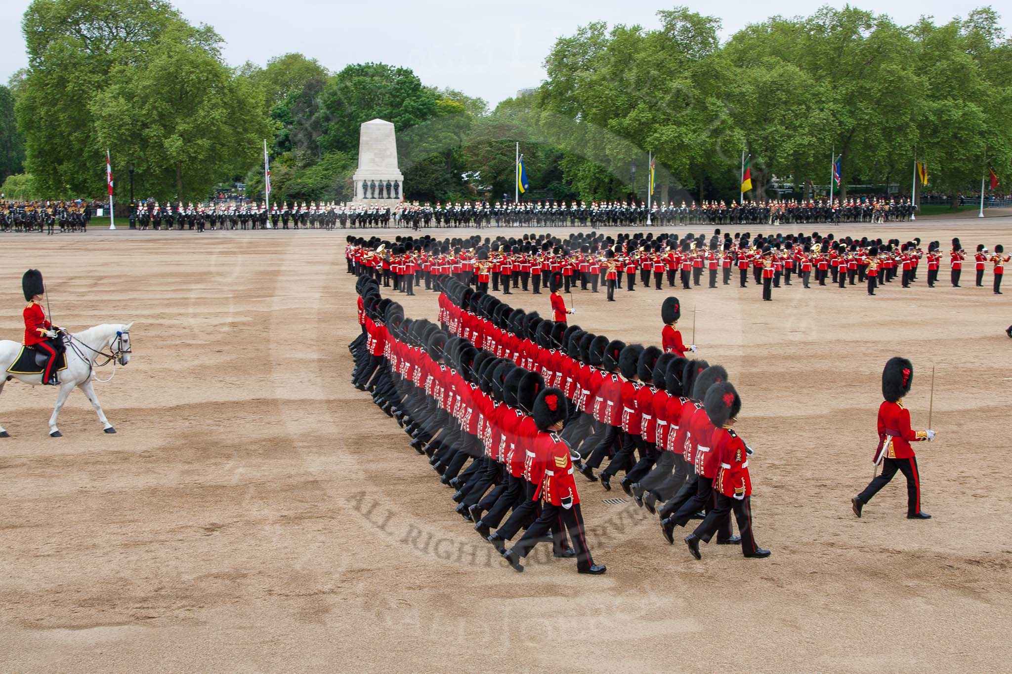 Major General's Review 2013: The guards change directions in the corners of Horse Guards Parade not by marching around the corner, but by forming new lines of guardsmen at a right angle to the previous direction.. Horse Guards Parade, Westminster, London SW1, United Kingdom, on 01 June 2013 at 11:36, image #516