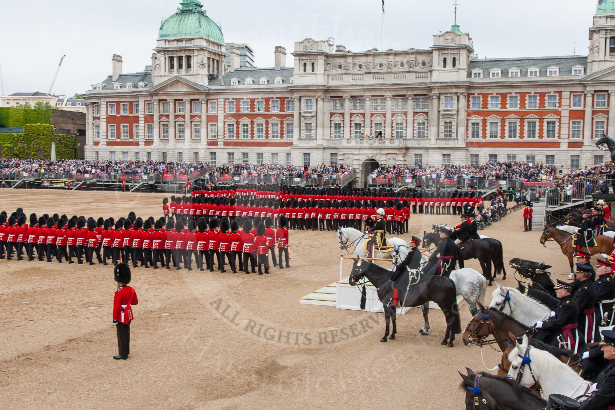 Major General's Review 2013: The guards change directions in the corners of Horse Guards Parade not by marching around the corner, but by forming new lines of guardsmen at a right angle to the previous direction.. Horse Guards Parade, Westminster, London SW1, United Kingdom, on 01 June 2013 at 11:36, image #515