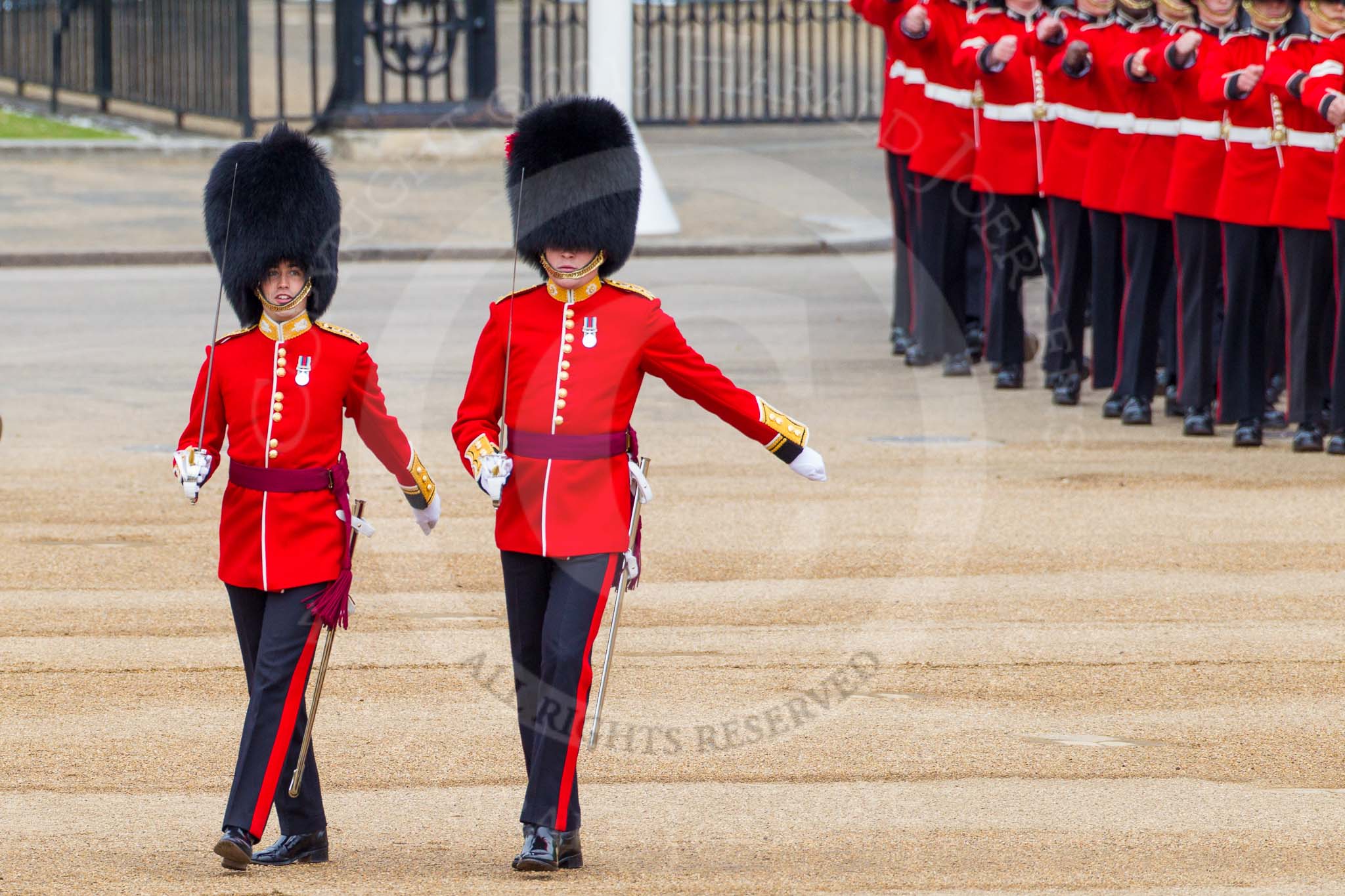 Major General's Review 2013: Captain P W Foster, No. 5 Guard, F Company Scots Guards, and Captain C E B Starkey, No. 6 Guard, No. 7 Company Coldstream Guards..