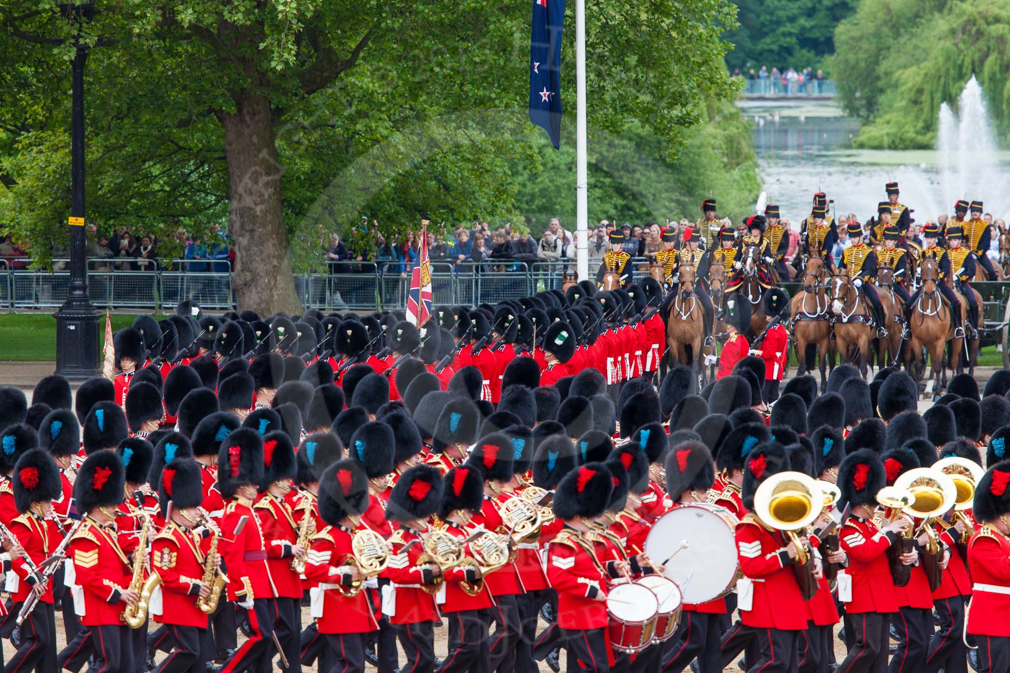 Major General's Review 2013: No. 1 Guard (Escort to the Colour),1st Battalion Welsh Guards, at the begin of the March Past.. Horse Guards Parade, Westminster, London SW1, United Kingdom, on 01 June 2013 at 11:30, image #457