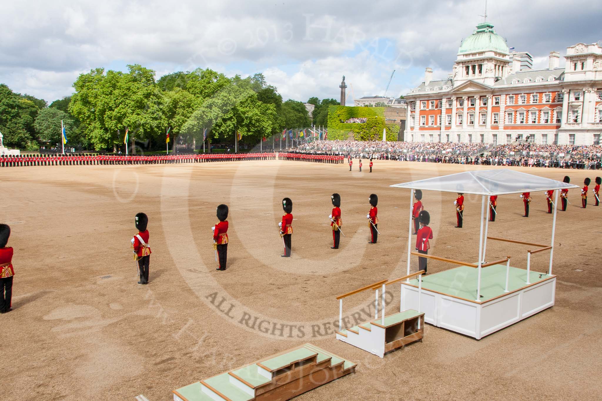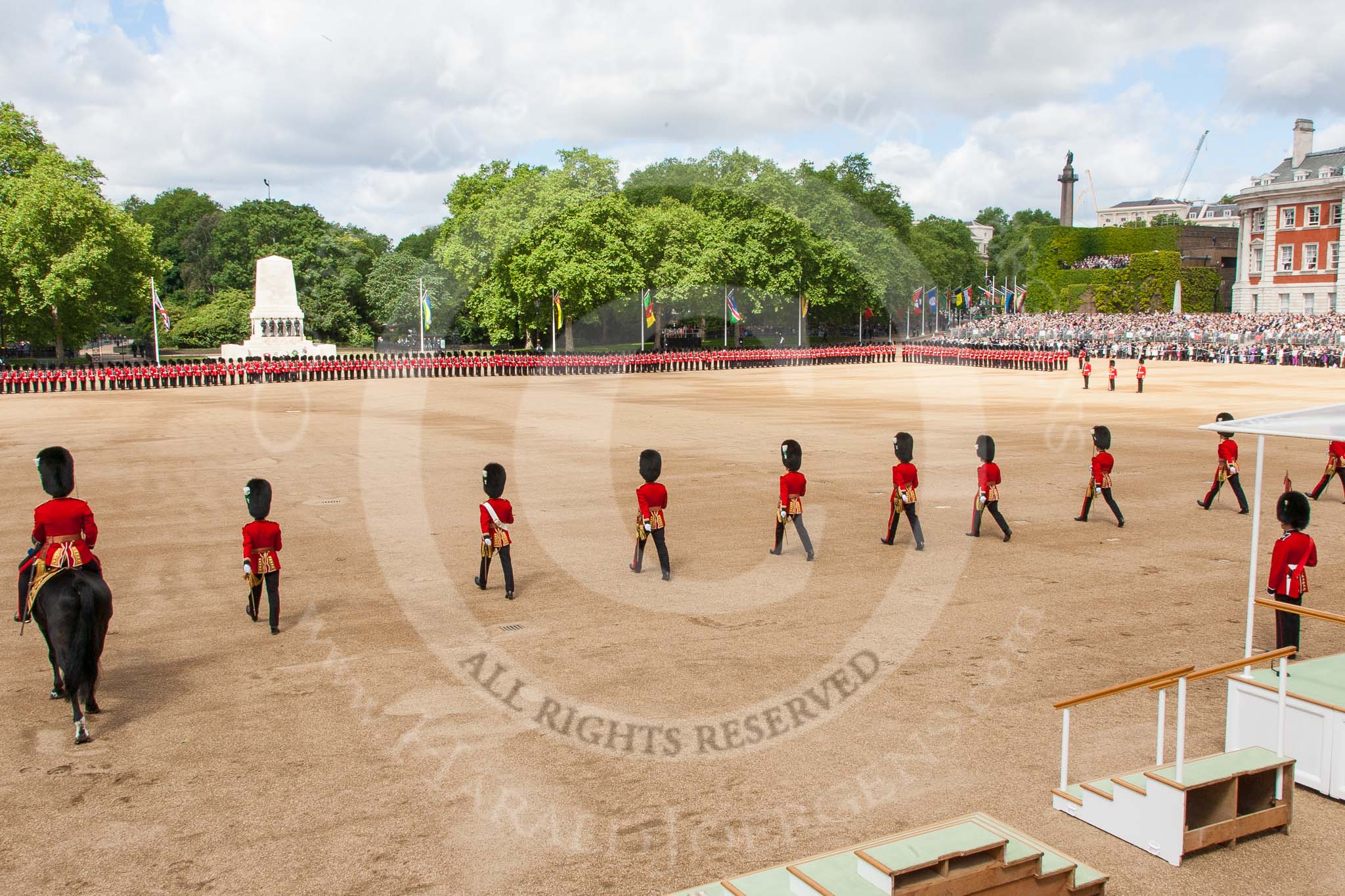 Trooping the Colour 2013: The line of 18 officers has spread, so they can all return to their respective Guards. Image #163, 15 June 2013 10:41 Horse Guards Parade, London, UK