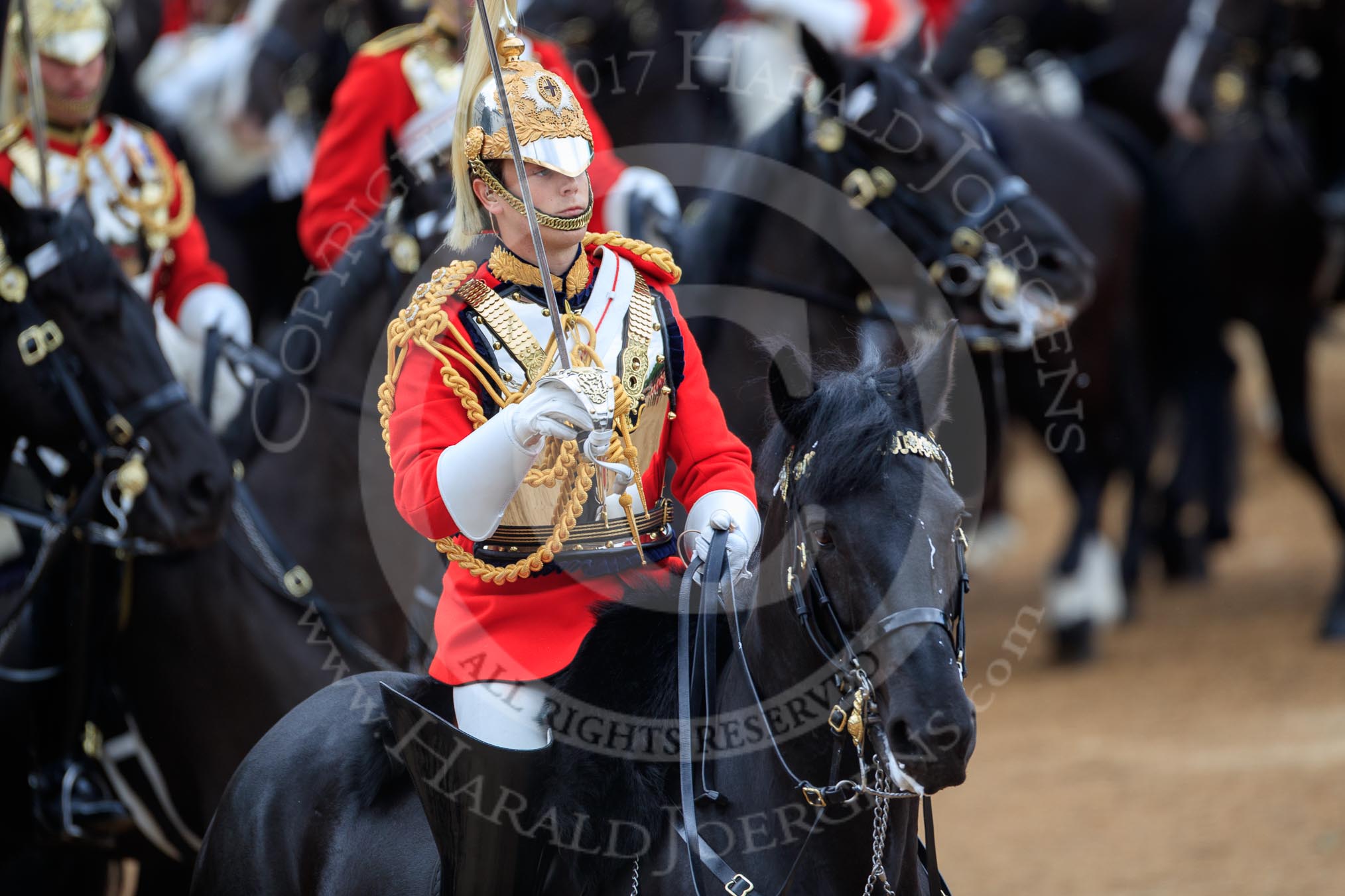 during The Colonel's Review {iptcyear4} (final rehearsal for Trooping the Colour, The Queen's Birthday Parade) at Horse Guards Parade, Westminster, London, 2 June 2018, 12:03.