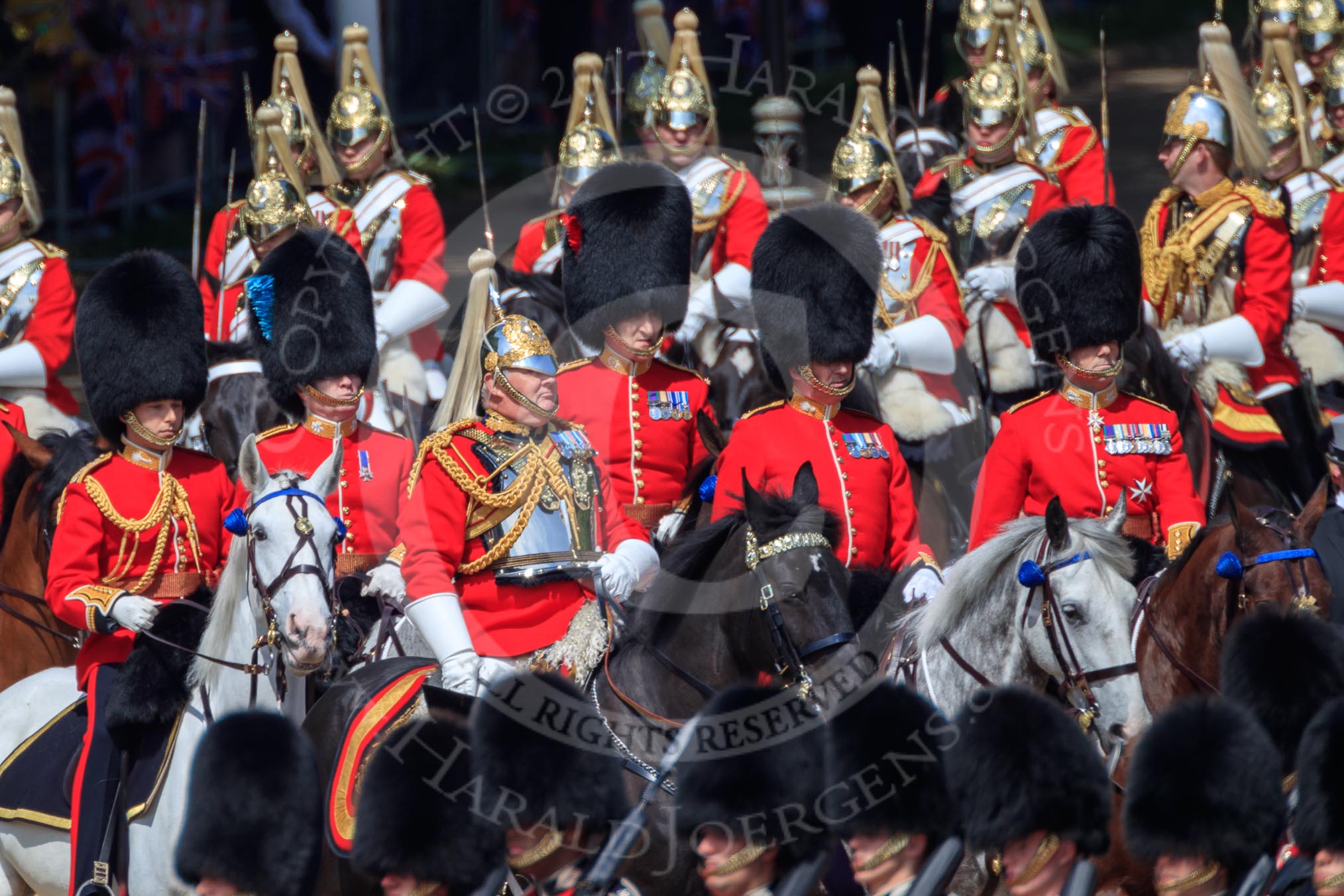 during Trooping the Colour {iptcyear4}, The Queen's Birthday Parade at Horse Guards Parade, Westminster, London, 9 June 2018, 10:59.