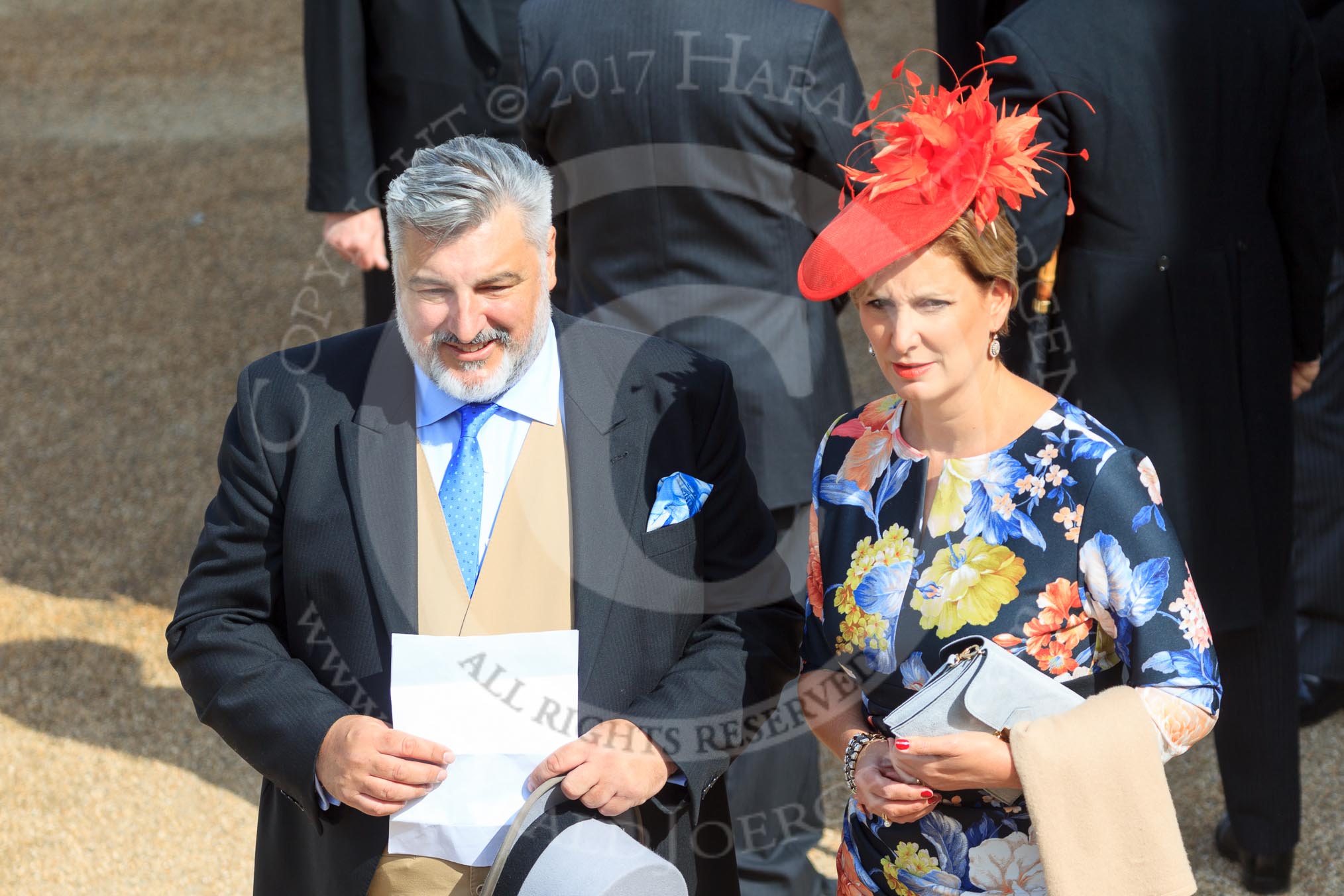 Smartly dressed Couple before Trooping the Colour 2018, The Queen's Birthday Parade at Horse Guards Parade, Westminster, London, 9 June 2018, 09:50.